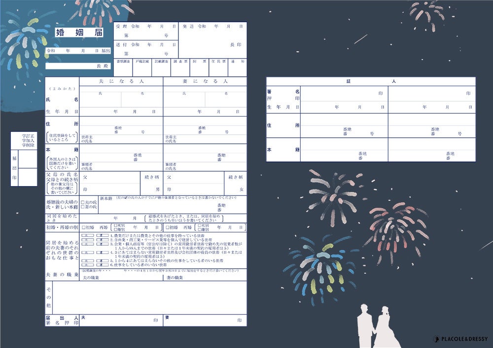 無料DL PLACOLE&DRESSYオリジナル 『プラコレ婚姻届』に新デザインが登場!花火やひまわりの夏に合わせた婚姻届など、5デザイン追加!新たに『オリジナル招待状』を同時リリース!株式会社プラコレのプレスリリース。