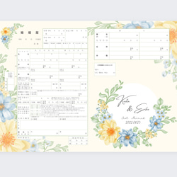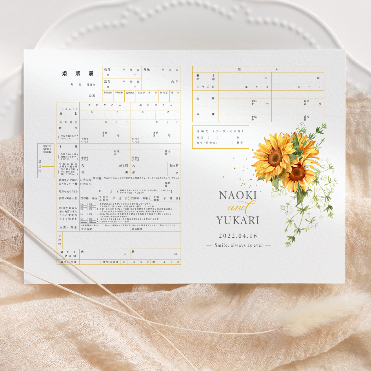 名入れ 婚姻届ひまわりブーケの婚姻届向日葵夏シンプルおしゃれ 役所へ提出できる婚姻届YUIAI おしゃれで可愛いデザイン婚姻届・出生 届。