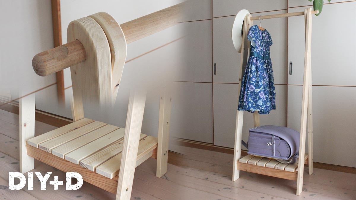 木製のかわいらしい子供用ハンガーラックをDIY!ランドセルの収納にも最適! › DIY+D。