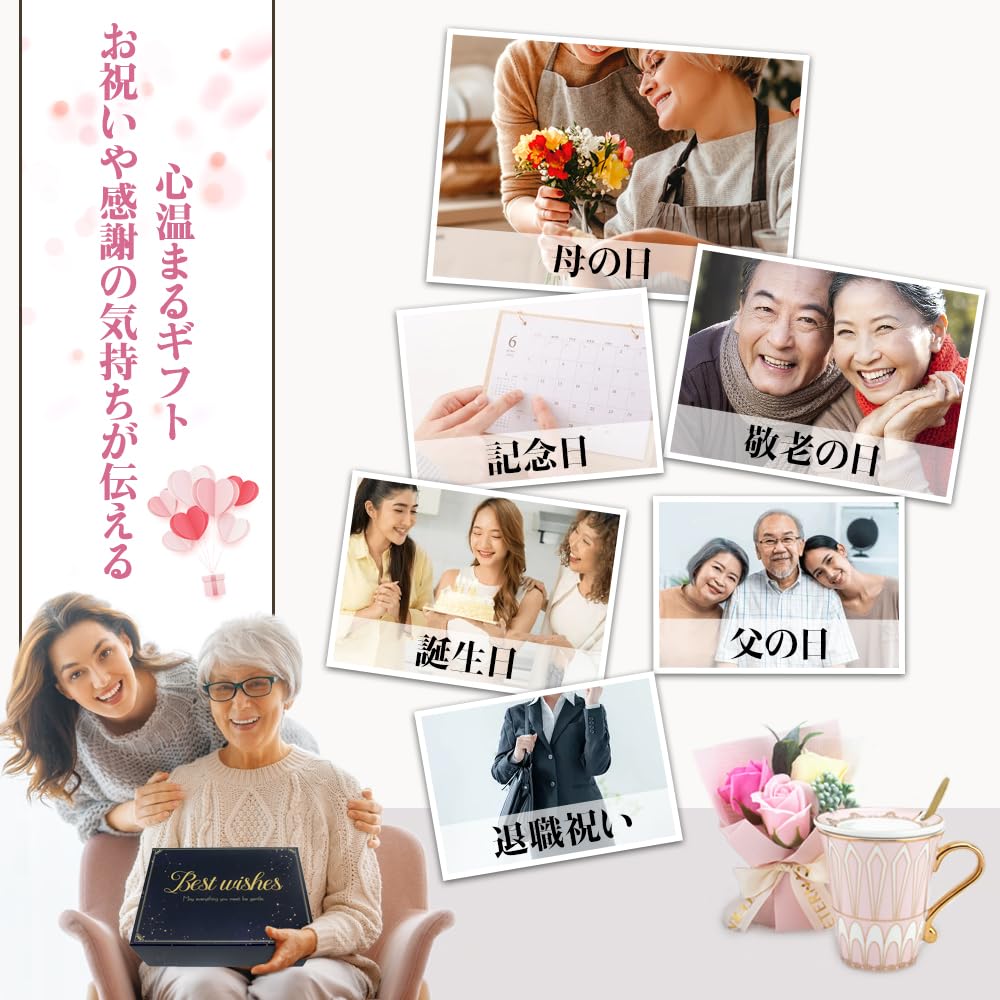 Amazon.co.jp: 誕生日プレゼント 女性 退職祝い 人気 母の日のプレゼント お母さん 義母 妻 ギフト ソープフラワー 花束コーヒーカップセット記念日 送別会 敬老の日 50代 60代 70代 プレゼント女性 20代 30代 40代 ギフトボックスセット おしゃれマグカップ 蓋付き。