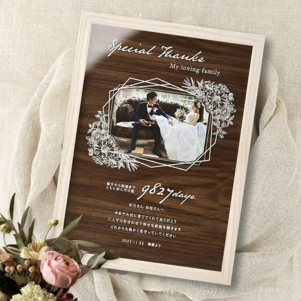 子育て感謝状フレームタイプ 贈呈品 結婚式 プレゼント ナチュラル 写真 両親贈呈品 両親プレゼント 結婚 記念品 ありがとう 感謝 記念品少人数 演出 父 母 両親ギフト ギフト ウェディング 結婚式準備 結婚準備 子育て感謝状 感謝状 両親へのプレゼント 花 フラワー。