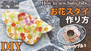 無料型紙 おはなスタイの作り方 もくもくスタイ 赤ちゃんの手作りよだれかけDIY リバーシブルで使える。