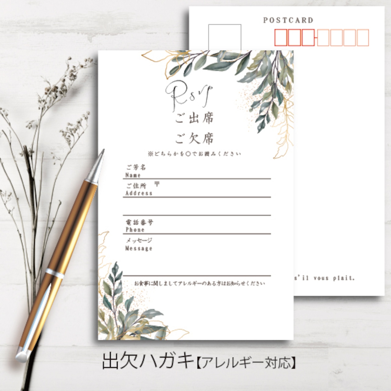 10枚 ウエディング出欠はがき 結婚式 返信 RSVP 招待状 印刷会社仕上げ アレルギー ナチュラル ウェディング 送料無料Wedding*momo-noha。