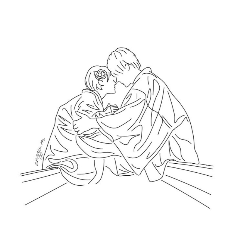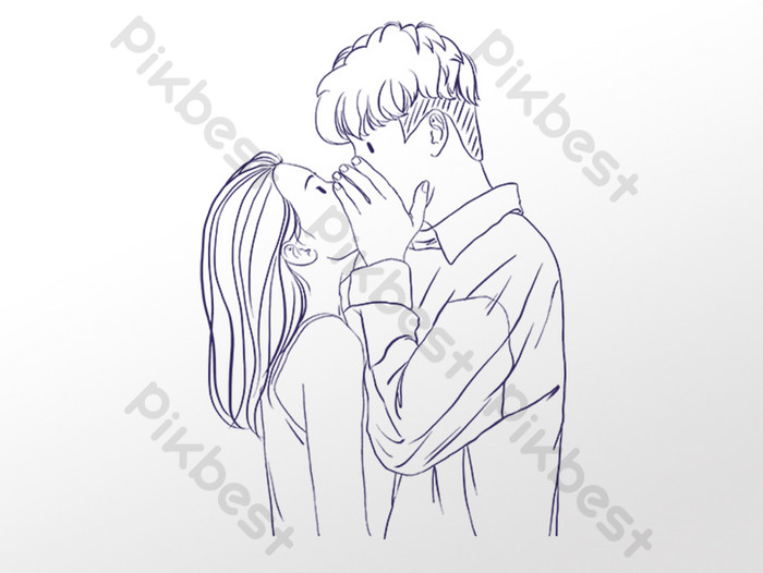 漫画の手線画愛のキャラクターのカップル イラストAI 無料ダウンロード - Pikbest。