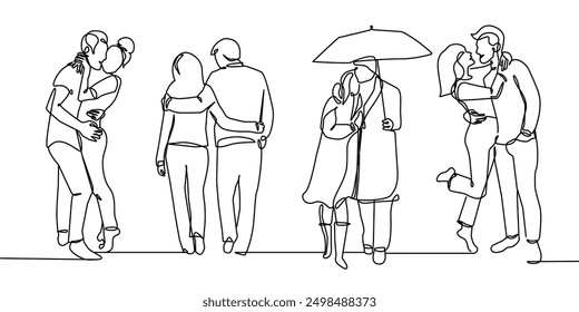 カップル連続線画愛好家のカップルのシンプルなミニマリストのイラストを描くPremiumベクトル素材。
