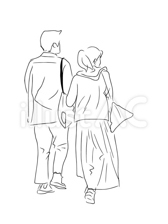 カップル後ろ姿モノクロ線画イラスト - No: 22385832無料イラスト・フリー素材なら「イラストAC」。