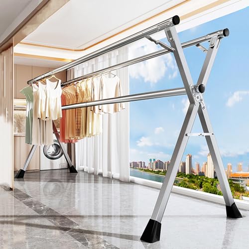 在庫処分 LENSKINS 物干し ベランダ 洗濯物干し 伸縮可能 組立不要 両側を補強 ステンレス製 折りたたみ式 室内物干し 布団干し ベランダ物干しタオルハンガー 物干し台 物干しラックベランダ 屋外室内兼用 シンプル コンパクト一人暮らし 物干し 台 屋外。
