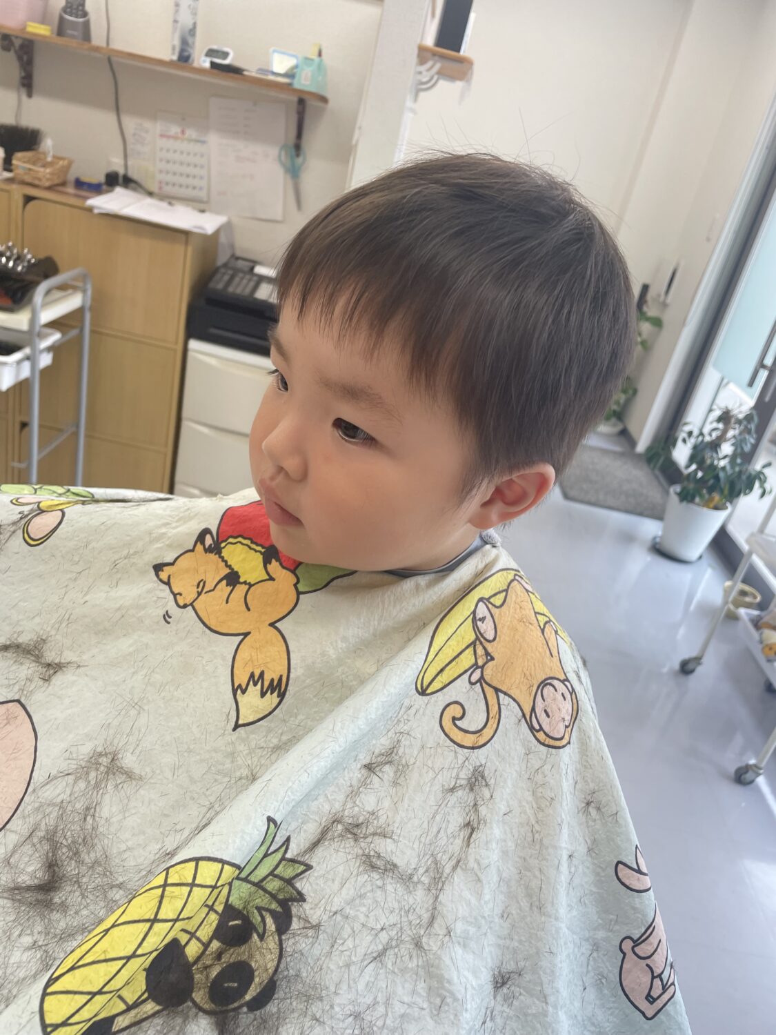 1才になったばかりのボクの前髪カット🧸✂️🤎キッズカットbaby赤ちゃんカット新城美容院新城美容室子供ヘア前髪。