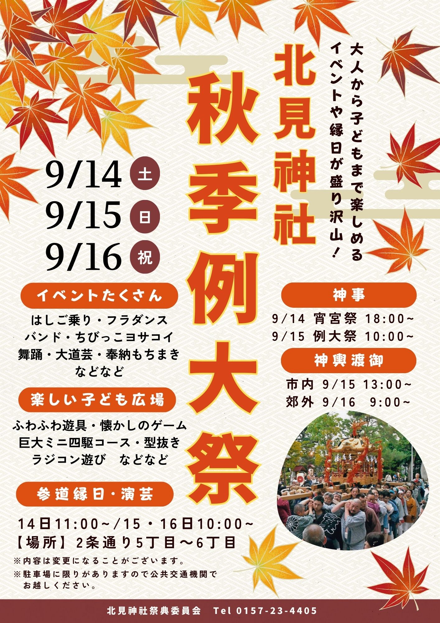 例大祭毎年当社では、九月一週目の土日に例大祭が執り行われます。 今年の予定は下記の通りです。 ◇◇九月六日 土 宵宮◇◇ ・縁日 :正午~午後九時・和太鼓、お囃子:午後一時 ・奉納演芸 :午後二時~八時 ※催しの変更がある場合がございます。 ご了承ください。