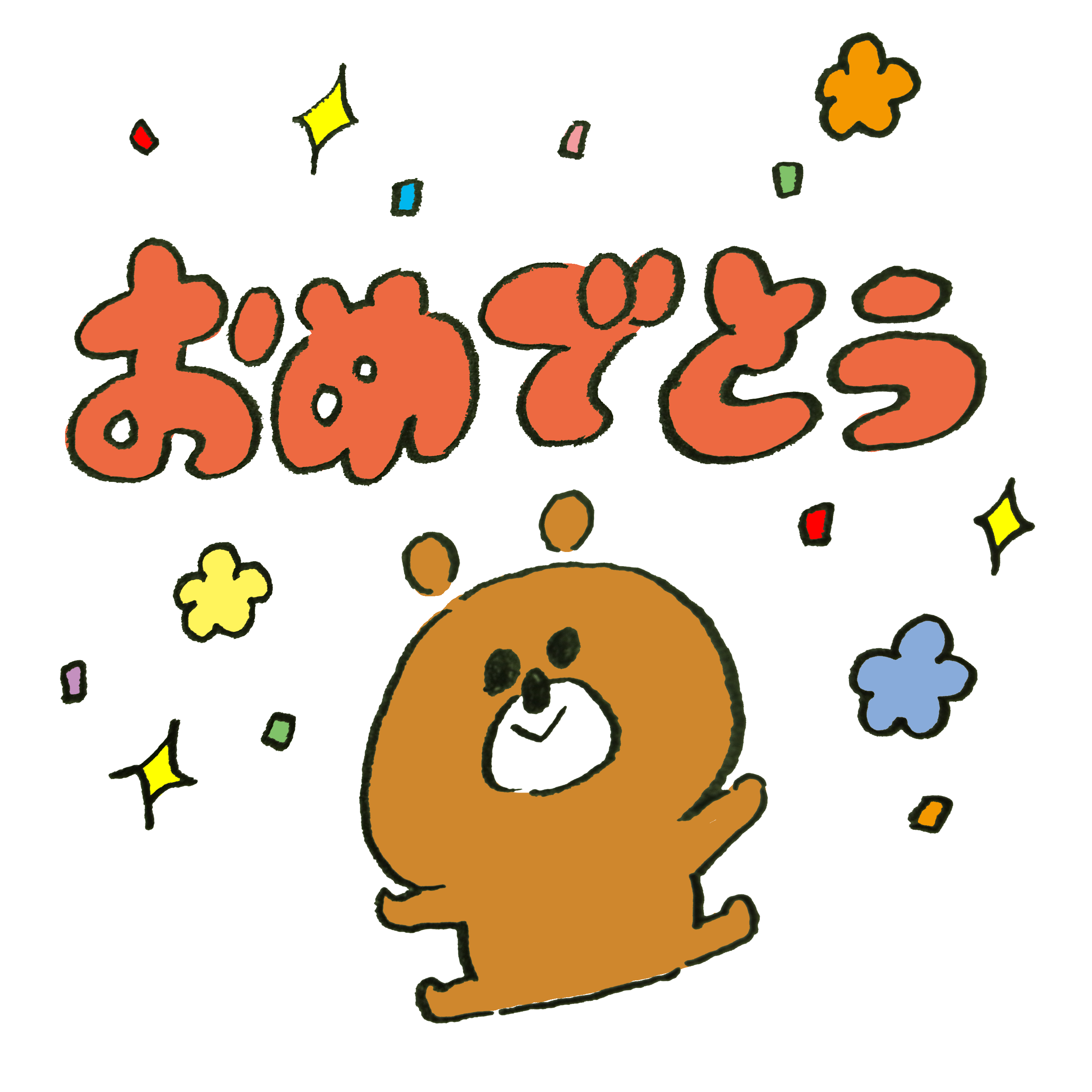 おめでとう」のメッセージを伝える熊のイラストゆるくてかわいい無料イラスト・アイコン素材屋「ぴよたそ」。