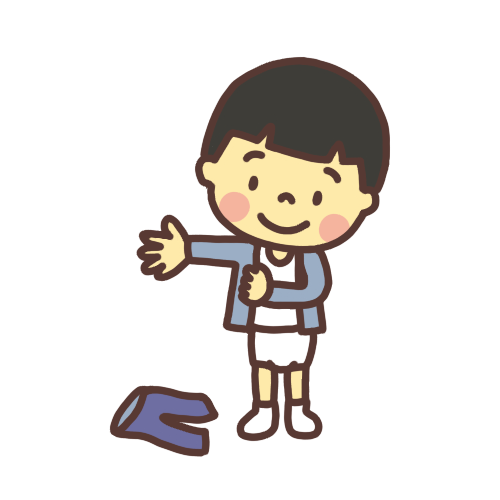 洋服の着替えをする子供 男の子 の無料 フリー イラストかわいい手描きの無料素材「てがきっず」保育園・小学校・介護施設にぴったりのフリー素材イラスト。