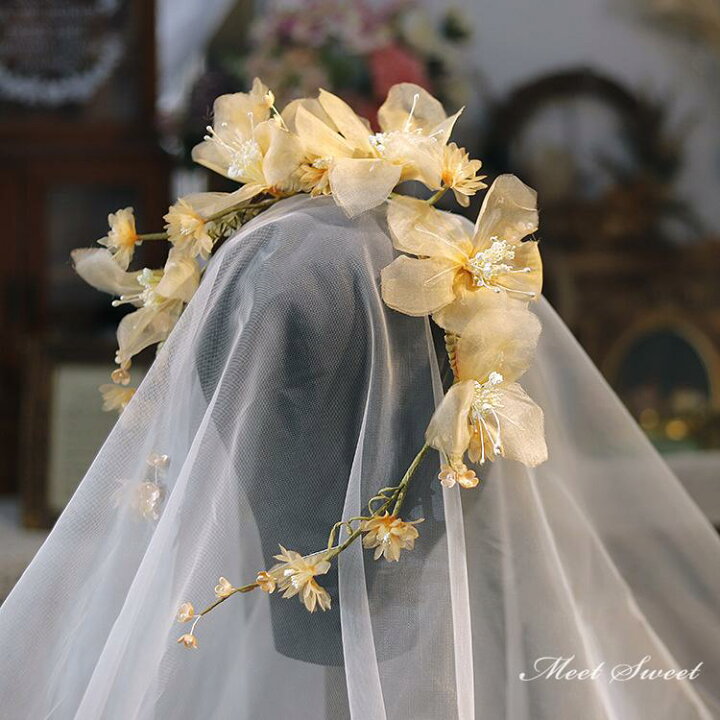 ウェディングヘッドドレス 手作り 花嫁 髪飾り ヘッドドレス 結婚式 フラワー ヘアアクセサリー 花 髪飾り 成人式 二次会 教会挙式 プライCW01LYX今季トレンド - メルカリ。