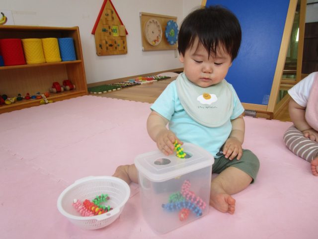 8月7日 火0歳児ももぐみ 室内遊び栄光平山台保育園。