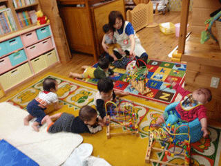 ひよこグループ 0歳児 室内遊び: いまいずみ保育園。
