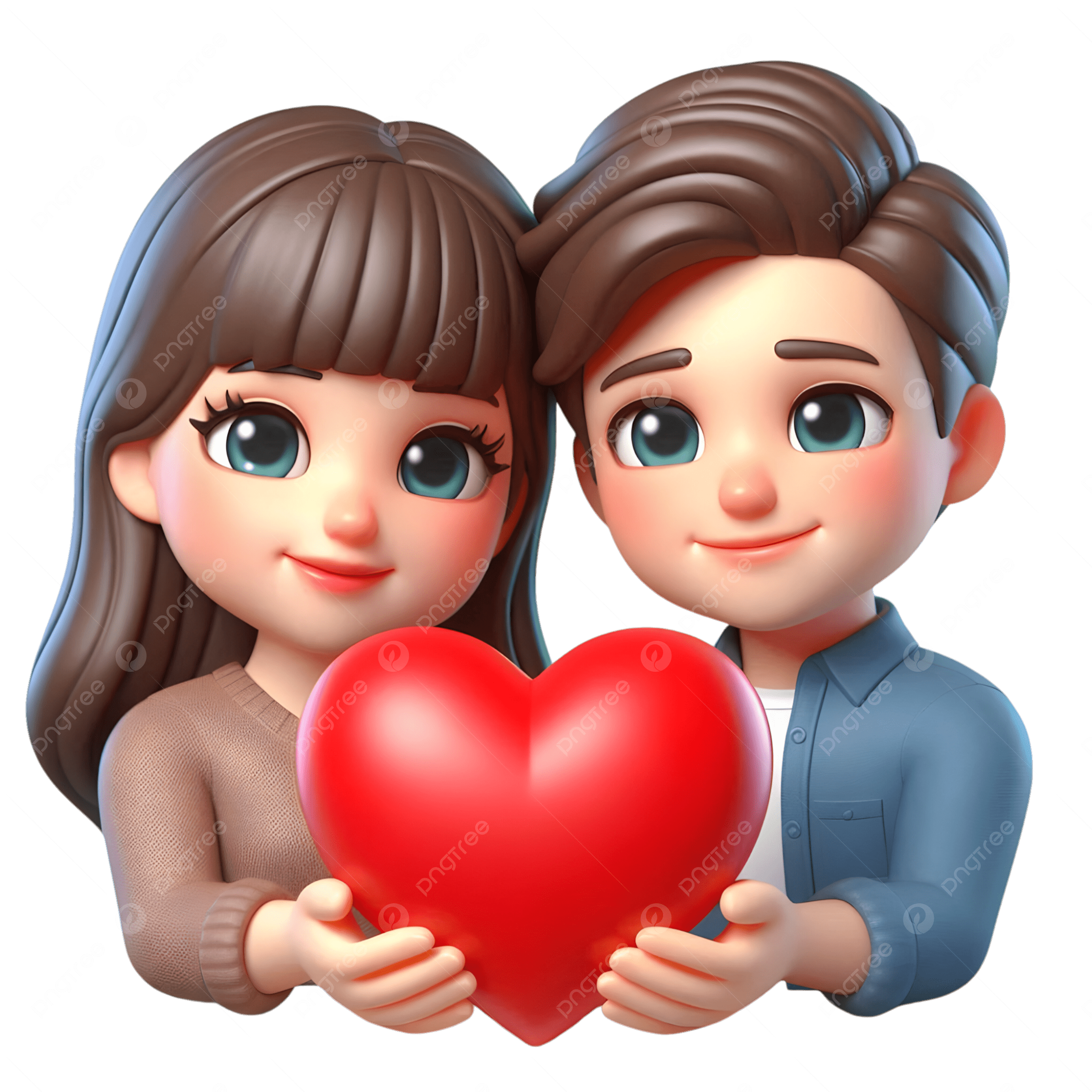 透明な背景にハートマークを持つ 3 D のかわいい若いカップルイラスト素材透過、PNGフリー画像ダウンロード - Pngtree。