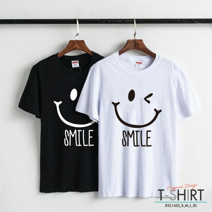 楽天市場 Tシャツ レディース メンズ クルーネック 丸首 綿 半袖 カットソー ロゴ プリント 大人かわいい オシャレ ペア カップル おそろリンクコーデ にこちゃん ニコちゃん スマイリーマーク smile スマイル ウインク 可愛い 大人かわいい : NO Other。