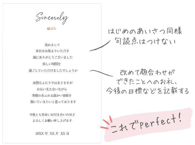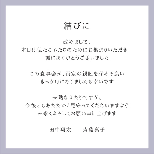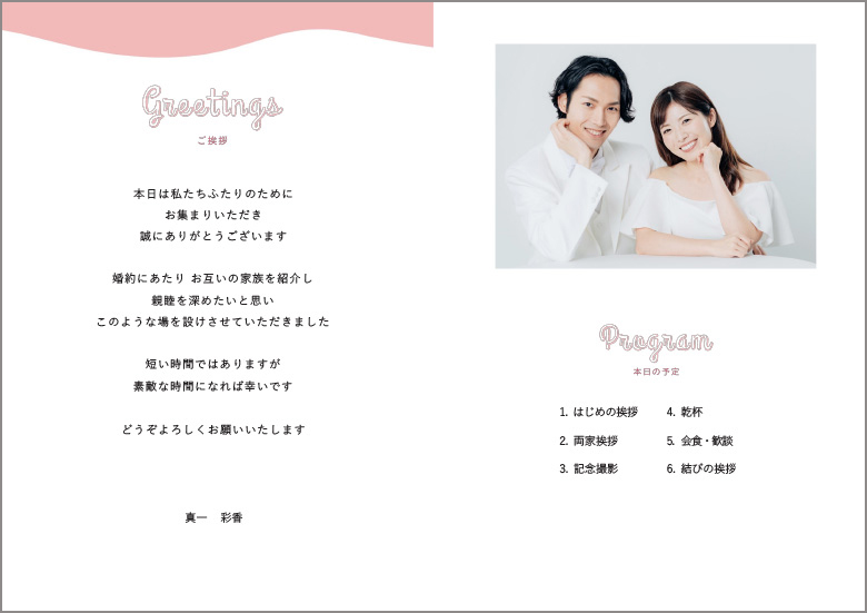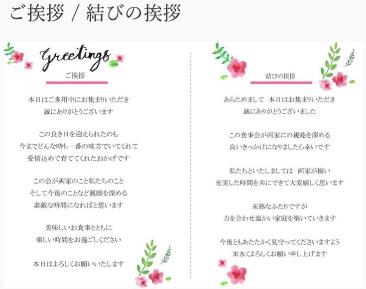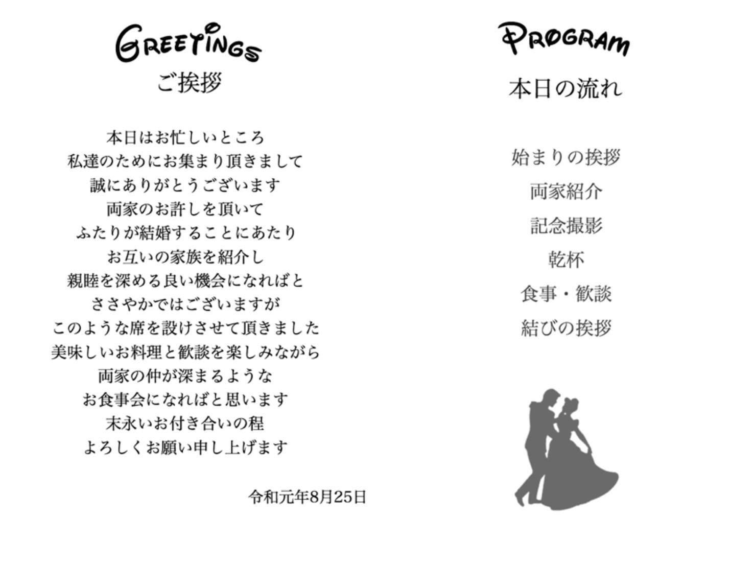 顔合わせ会しおりに載せる挨拶文例集10選~はじまりの挨拶と結びの挨拶~アツメル結婚式レシピ 買える結婚式アイテム WeddingMart ウェディングマート。