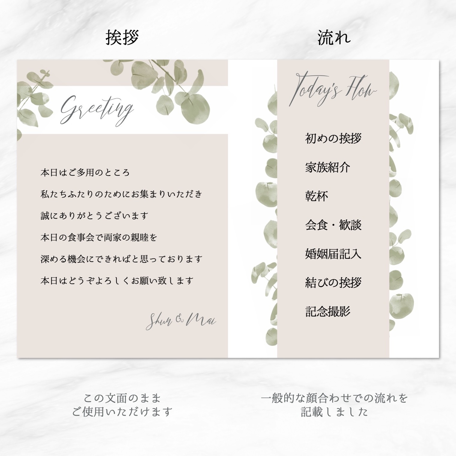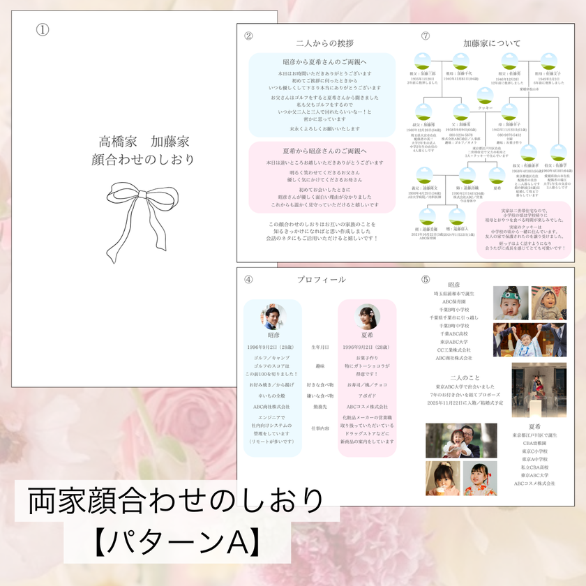 フルオーダーデザイン 顔合わせのしおり 両家顔合わせ 食事会。