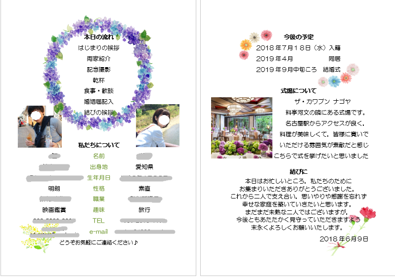 無料テンプレート 「両家顔合わせのしおり」を手作り!nico designのブログ。