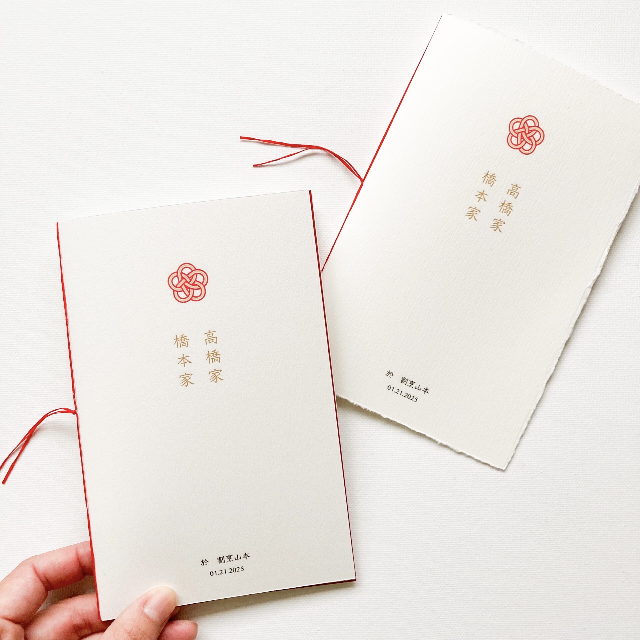 両家顔合わせしおりの綴じ方・可愛い綴じ紐のデザインmarry マリー。