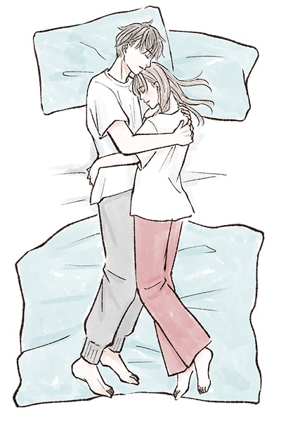 抱き合って寝ることで得られる効果とは? 寝相から分かる心理も解説 イラスト付き 「マイナビウーマン」。