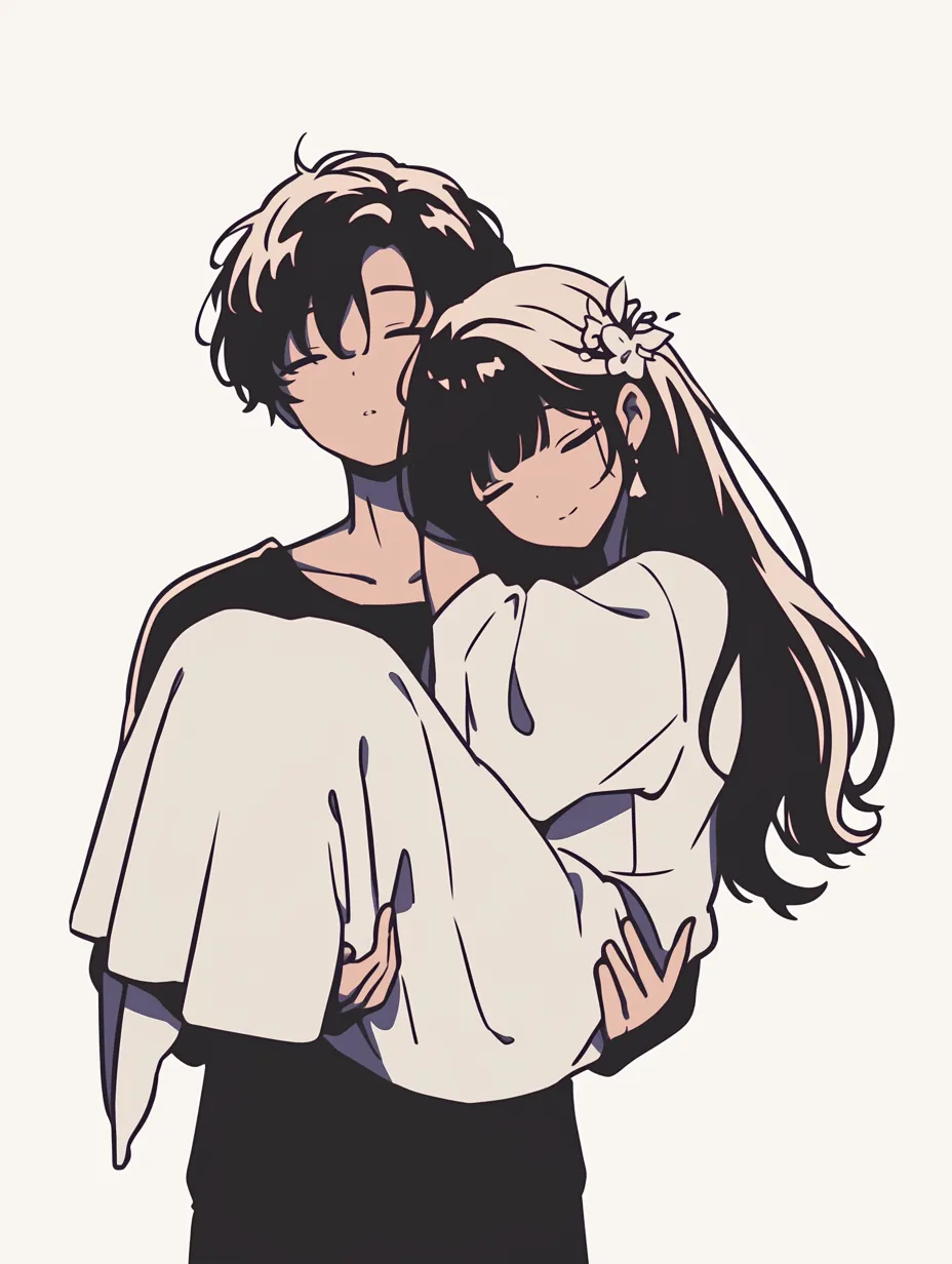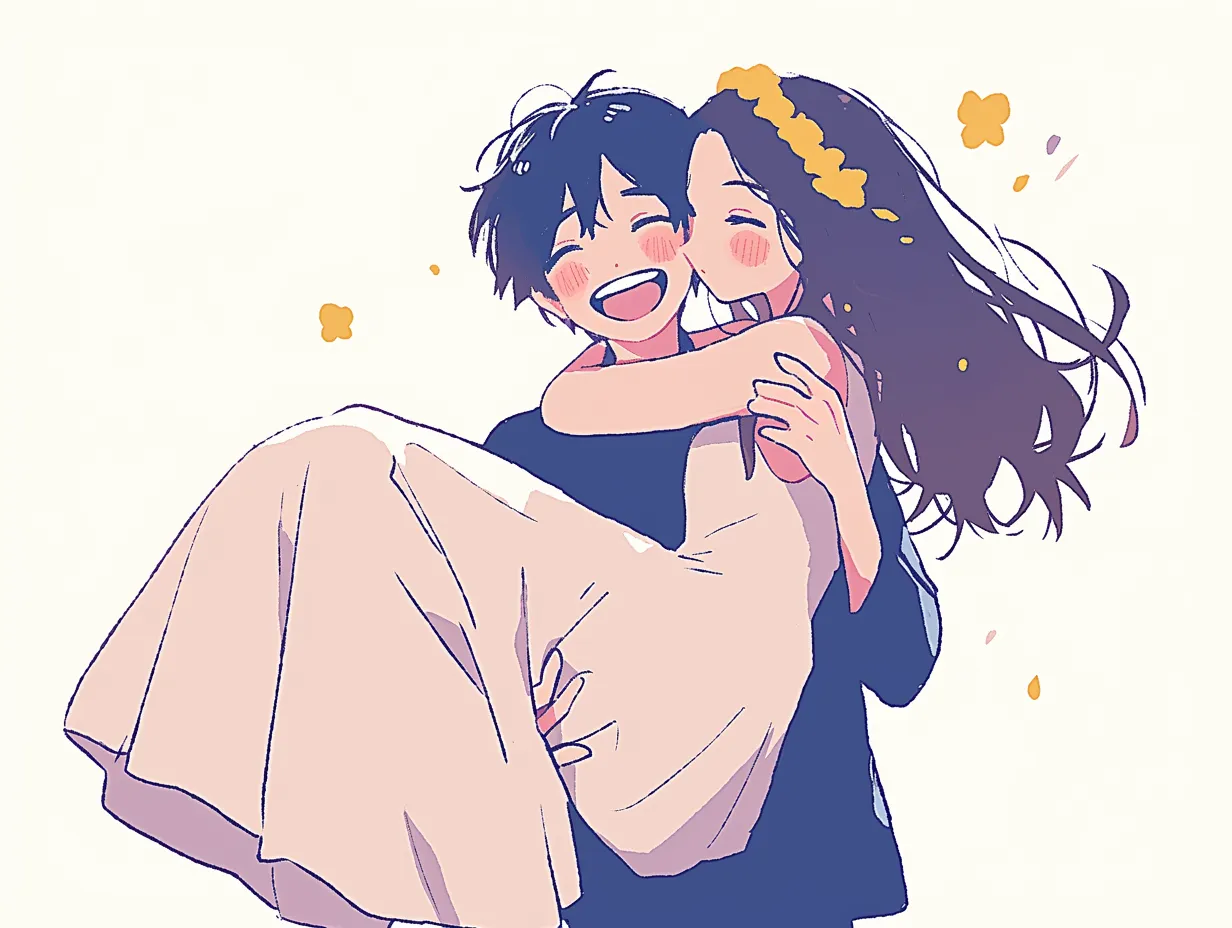 特別な日に抱っこカップルイラスト・フリー素材なら「シンテリ」。