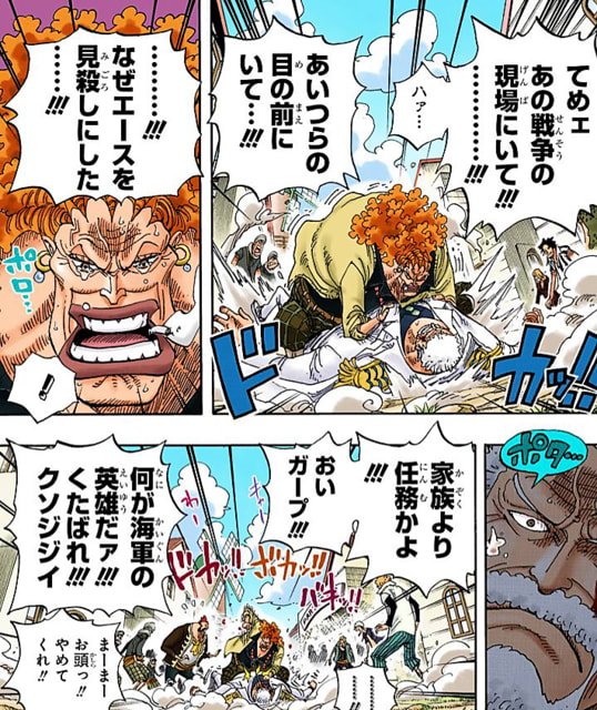 万博でわんぱくハル麦👒 on X: "今日のONE PIECE ルフィの寝ながら食べるという特技ほんと自分もいつかできないかな 🤔 ここから怒濤に ルフィの家族が紹介されますがまずはガープきたァァァ‼️ 扉絵からの登場はやはりテンション上がる😂 コビメッポ奮闘記からの再登場。