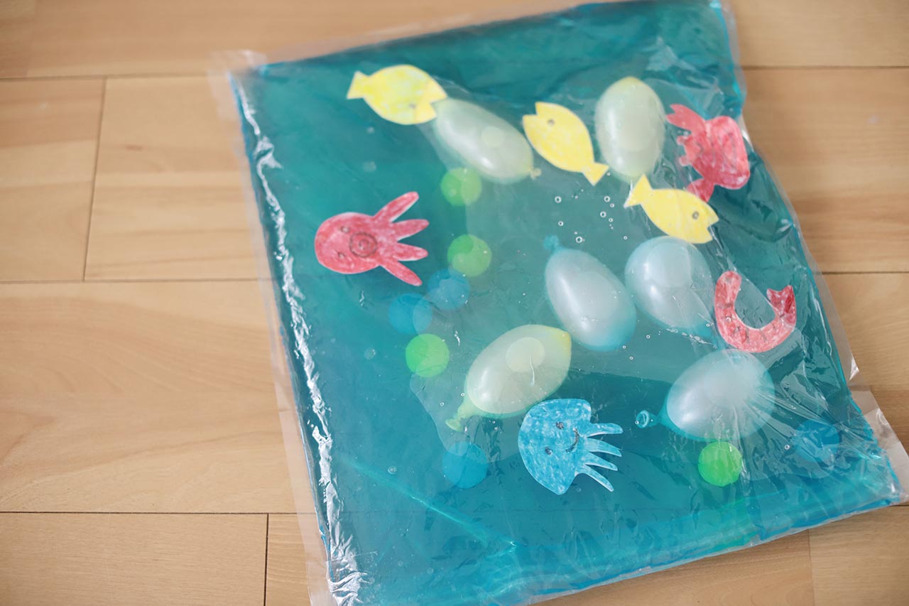 赤ちゃんから遊べる!足や手で不思議な感触を楽しもう♪ ひんやりちゃぷちゃぷ手作りウォーターバッグコモドライフ。