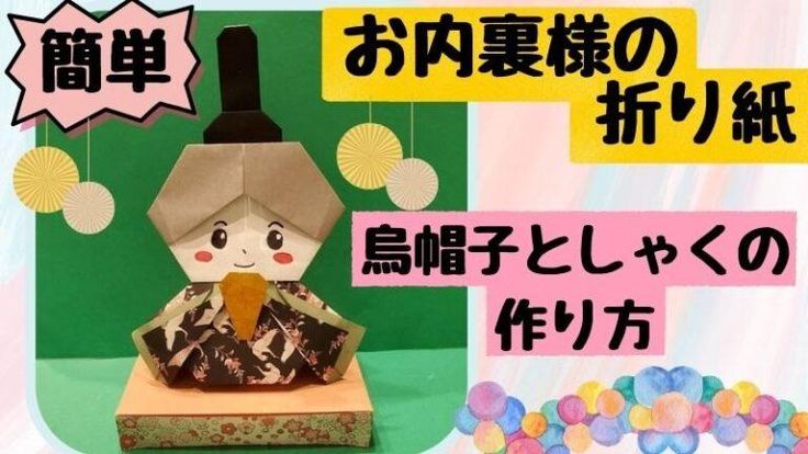 お内裏様の折り紙の簡単な折り方作り方☆冠 烏帽子 やしゃく 笏 もスグできる。