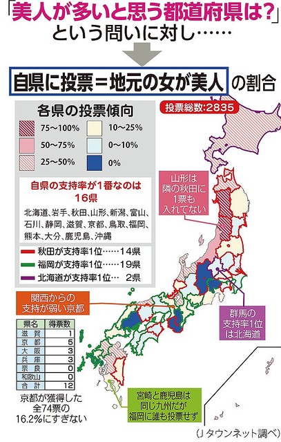 美人が多いと思う都道府県」ランキング発表! 3位・北海道、2位・秋田 1位は「あの県」だった 全文表示 Jタウンネット。