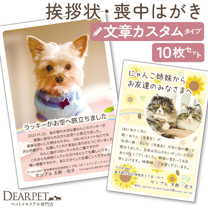 楽天市場 ペット 挨拶状 喪中はがき 自由な 文章 カスタムタイプ オーダーメイド 名入れ 10枚 セットネコポス対応ペット用 ペット仏具メモリアルグッズ 暑中見舞い 寒中見舞い クリスマス メッセージ ペットロス 名前 写真入り 犬 猫 うさぎ : ペット仏壇仏具の。