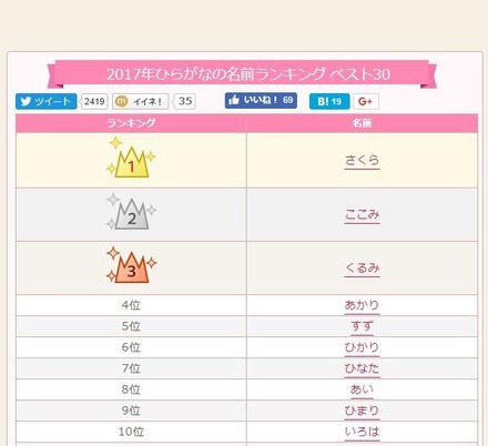国内最多26万人調査 2024年赤ちゃんの名前ランキングを発表! 男女とも1位が入れ替わり、新たな名づけのトレンドも。さらに あの大人気アスリートの名前 が大幅ランクアップ!たまひよ。