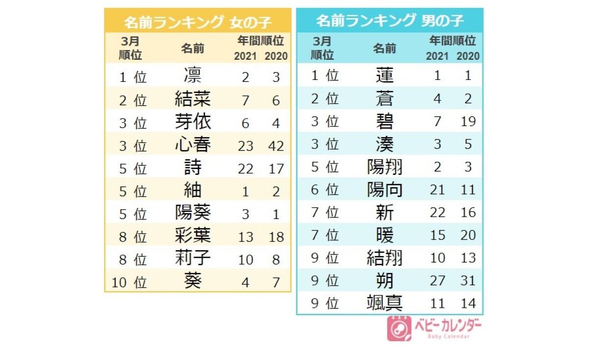3月生まれは「春ネーム」「サクラネーム」が急増!「春」「桜」を用いた名前や「さくら」「はる」とよむ名前が人気☆2022年『3月生まれベビーの名づけトレンド』発表!株式会社ベビーカレンダーのプレスリリース。