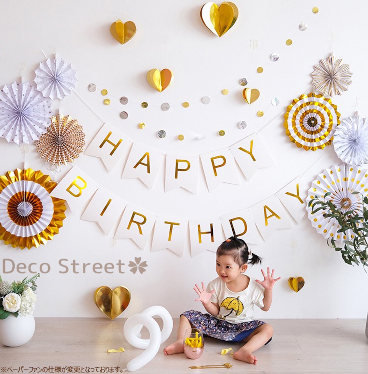 即納 北欧系 ナチュラル オシャレなペーパーファン と ガーランド 誕生日 フラッグ ボール ベビーシャワー サプライズ 1歳 2歳 3歳パーティー用品 飾り付け 撮影 インテリア 小物 結婚式 会場装飾 ハッピーバースデー管理番号P011Deco Street ✿バルーンと。