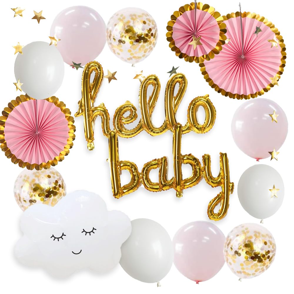 AmazonHanamei ハナメイ ベビーシャワー デコレーションセット 初めての方も 簡単装飾 飾り 飾り付け 装飾 バルーン 風船ガーランド トレンド 男の子 女の子 ウェルカム 出産祝い お祝い パーティーピンク風船・バルーンおもちゃ。