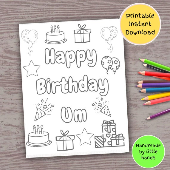 誕生日おめでとう Um 子供向けの印刷可能な塗り絵、かわいい手作りの誕生日カード、幼児、未就学児、子供、息子、娘からの DIY 誕生日プレゼント -Etsy 日本。