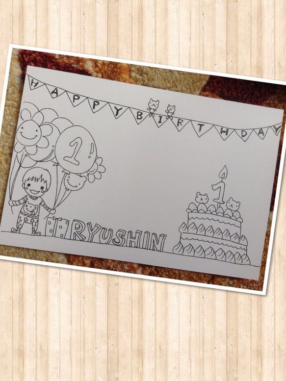 お誕生日ぬりえ☆手書き☆オーダーメイド☆バースデーカードフリマアプリ ラクマ。
