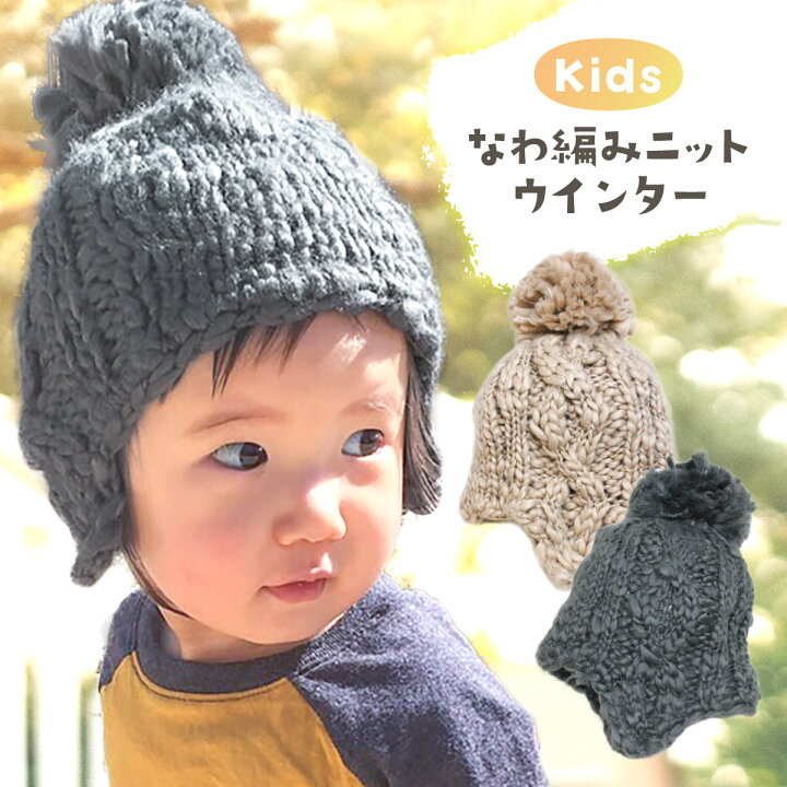 ふんわり手編み*なわ編みニットウィンター 帽子 ニット帽 ニット キッズ 子供 秋冬 防寒 耳当て 暖かい 梵天 可愛い 縄編み アラン模様 ポンポン手洗いOK 2024 帽子屋 ケースタ帽子屋 Kstyle。