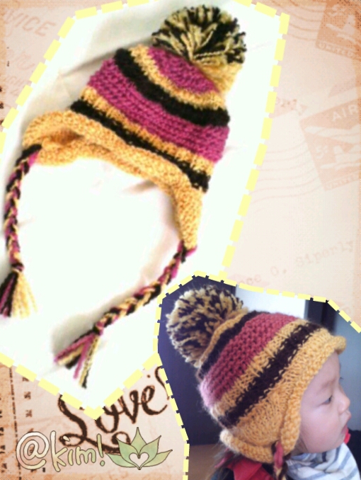 Knit for baby ~ Kobana こばな小花模様の耳当て付きベビーニット帽R.knit。