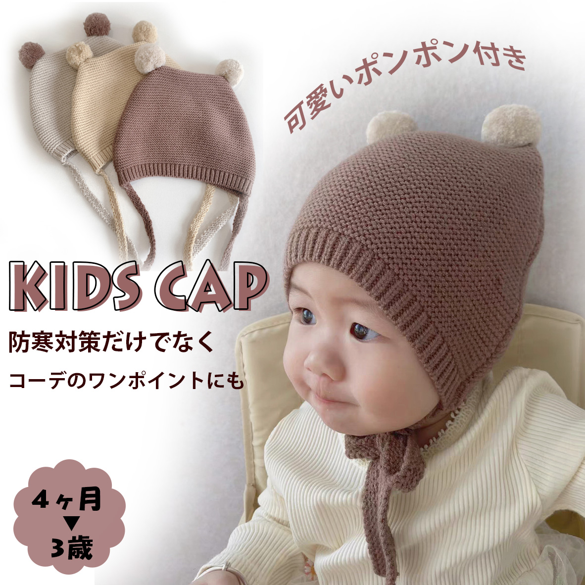 日本倉庫即納 子供 キッズ 帽子 可愛い ポンポン ニット帽 赤ちゃん ベビー あご紐ニット 手編みニット卸売・問屋・仕入れの専門サイト NETSEA。