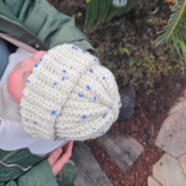 3か月の赤ちゃんにベレー帽風耳付きニット帽をかぎ針編みしました!小さいのですぐ編める星空迷路。