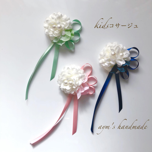 カラーオーダー対応 お子様用 コサージュ パール&リボン ピンク グリーン ネイビー 卒業式 入学式 卒園式 入園式 コサージュ 和装髪飾り&コサージュaym's通販 13386662Creema クリーマ。