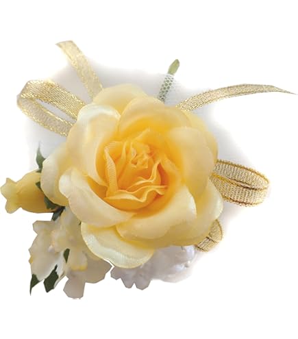 Amazon花飾り・胸花 コサージュ完成品・金のエッジパールリボン イエロー 1個卒業式・入学式・卒園式・入園式・2分の1成人式フラワーピック 通販。