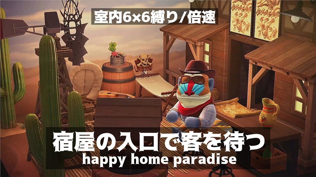 あつ森 宿屋の入口で客を待つ:まんたろう『砂漠の記憶』 ハピパラ 6×6縛り。