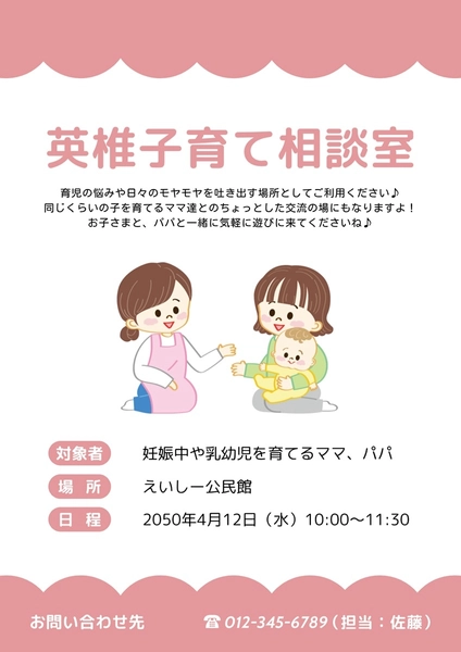 真ん中に大きく文字が配置された子育て支援向けポスターの無料ポスターテンプレート 12985 - デザインAC。