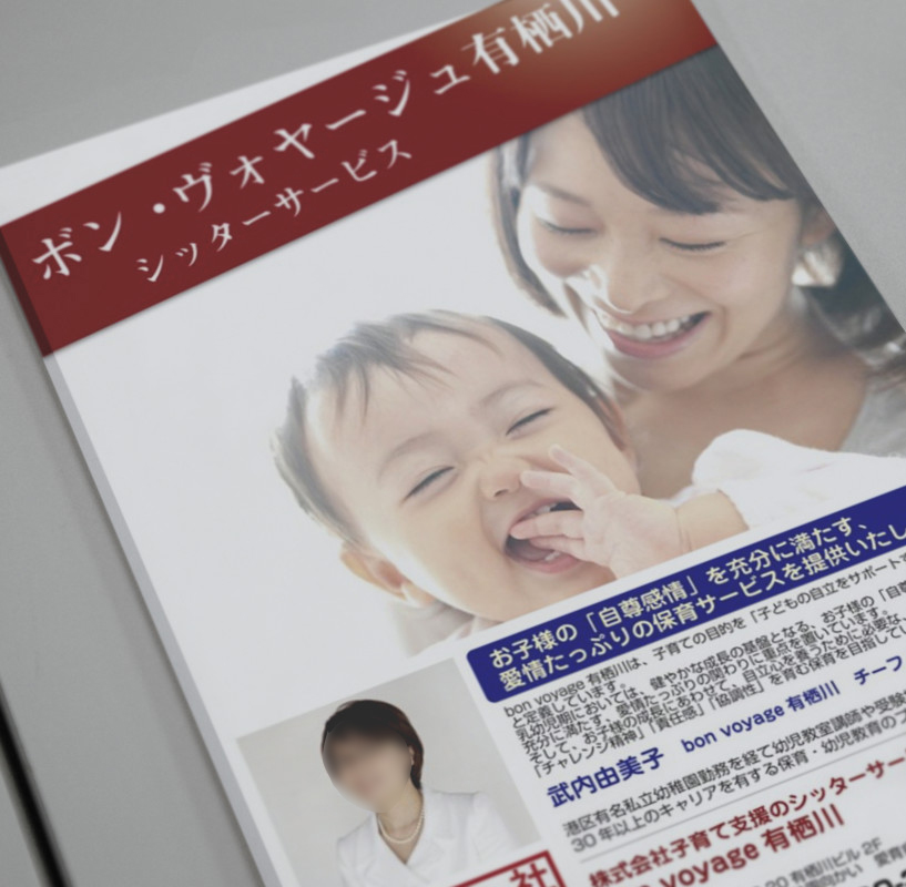 ポスター制作事例 – 子育て支援シッターサービスの信頼感のあるポスターデザインASOBOAD。