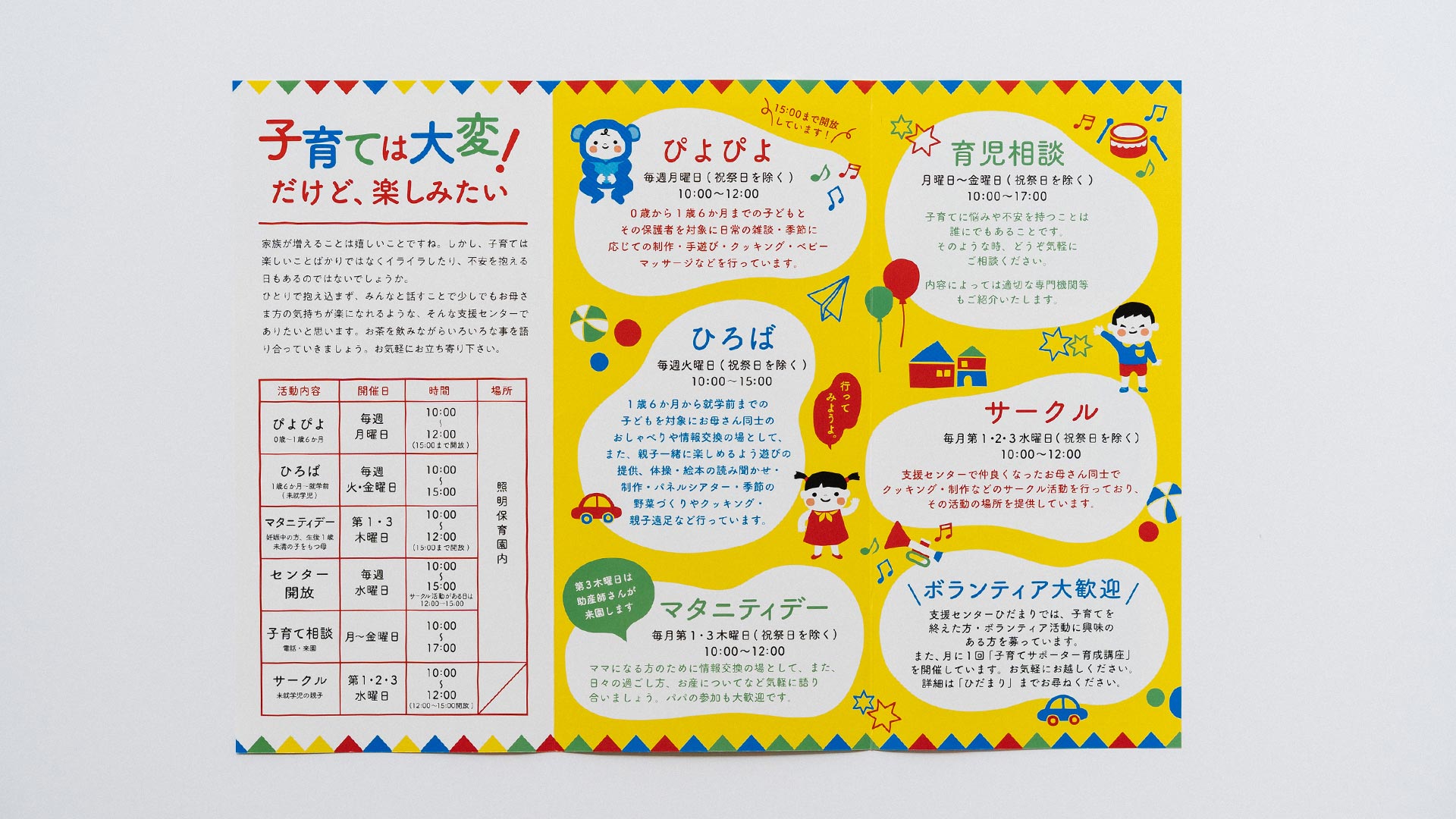 子育て支援センター『ひだまり』リーフレットJimotoデザイン室。