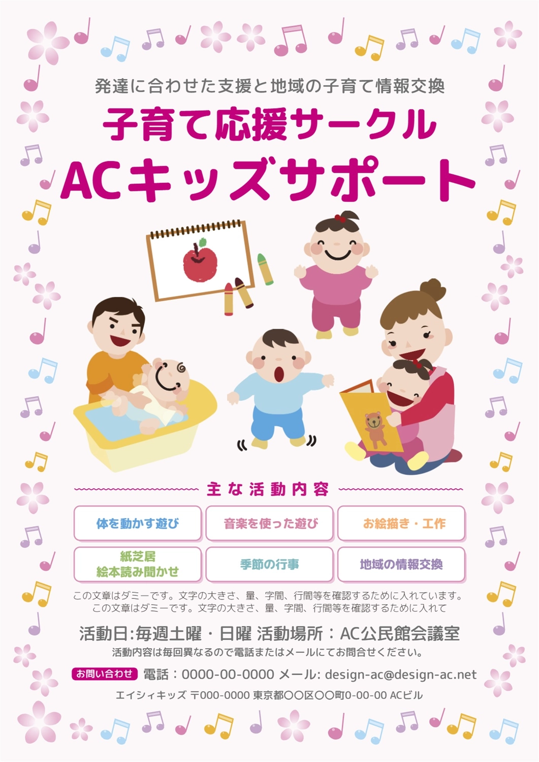 子育て支援フェスタチラシの無料チラシテンプレート 11105 - デザインAC。