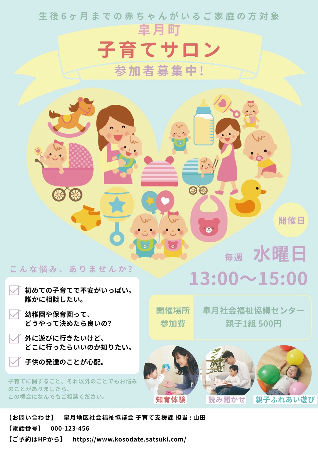 ナチュラルな子育て支援ポスターの無料ポスターテンプレート 12764 - デザインAC。