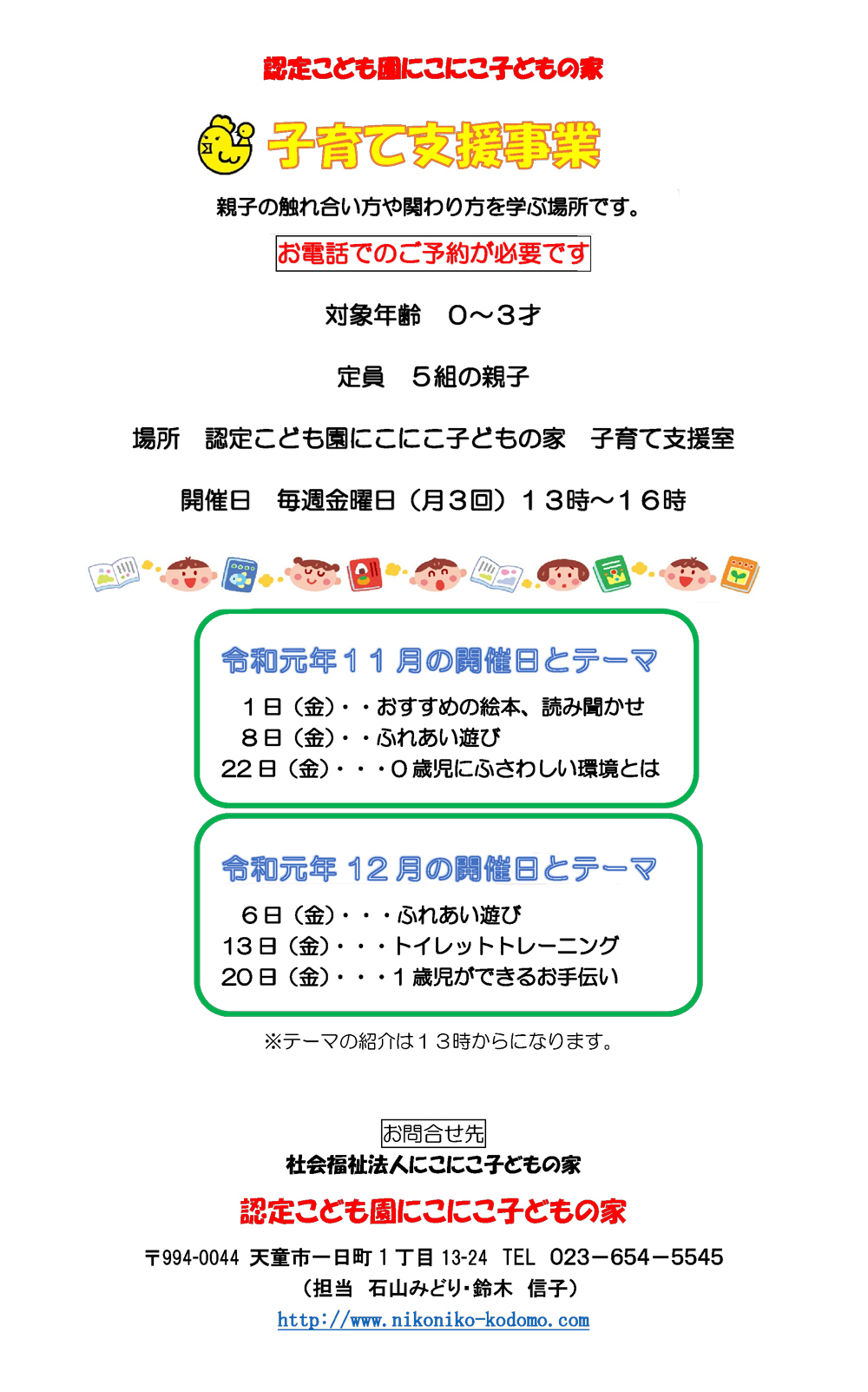 2019年9月・10月号 子育て支援のポスターご覧下さい大受保育園。